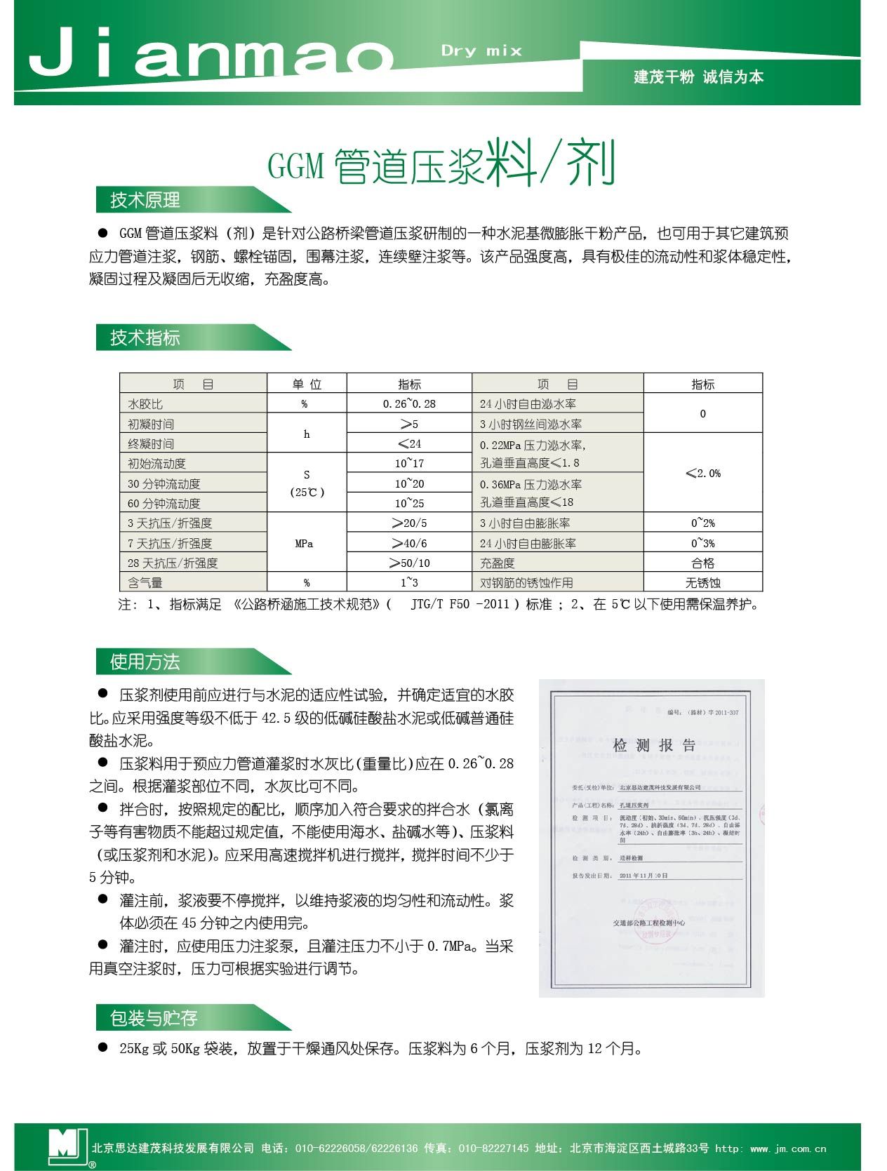 CGMJM系列高强灌浆料之GGM管道压浆料/剂